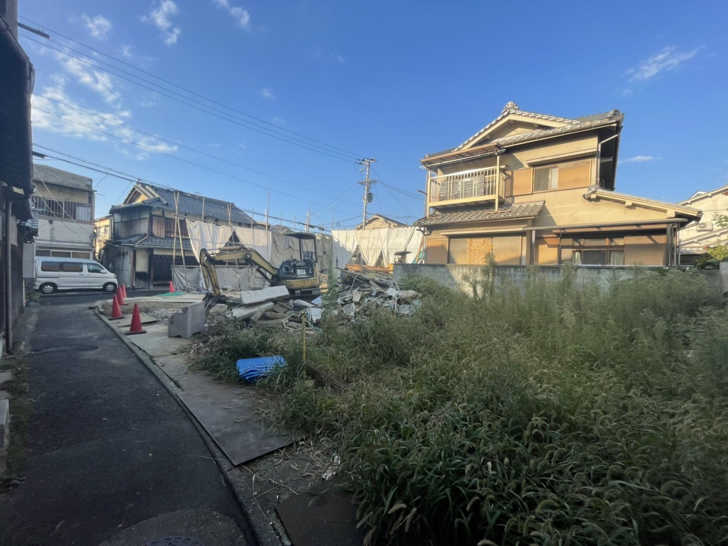 こちらの土地は新築用地として販売予定になっています、更地になってから、のぼりを揚げて本格的に販売活動を致します(*^^*)